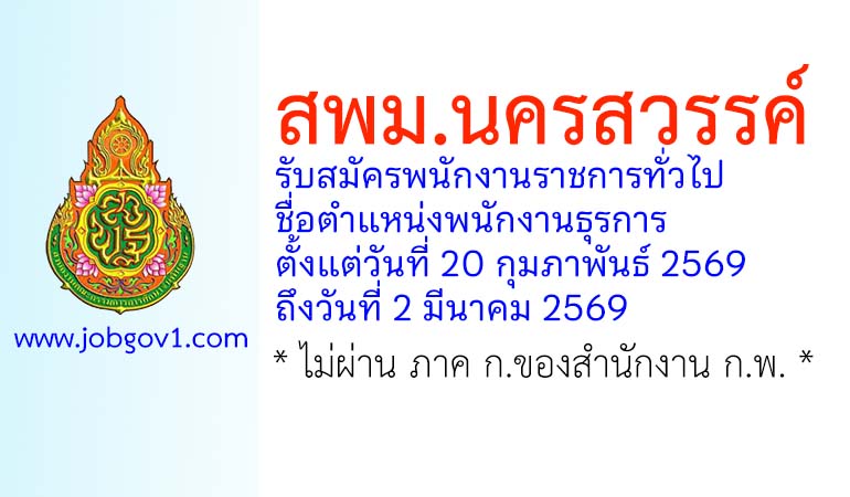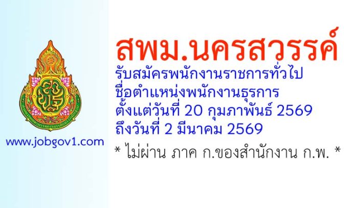 สพม.นครสวรรค์ รับสมัครพนักงานราชการทั่วไป ตำแหน่งพนักงานธุรการ ตั้งแต่วันที่ 20 กุมภาพันธ์ 2569 ถึงวันที่ 2 มีนาคม 2569