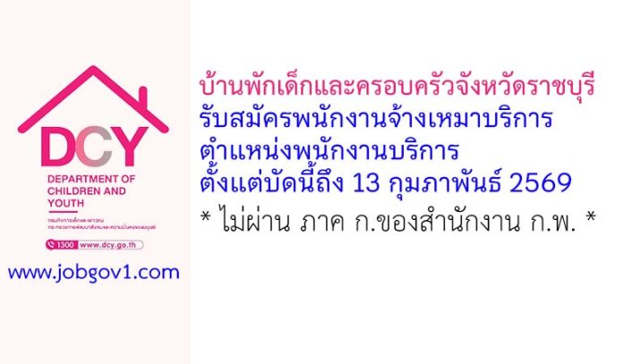 บ้านพักเด็กและครอบครัวจังหวัดราชบุรี รับสมัครพนักงานจ้างเหมาบริการ ตำแหน่งพนักงานบริการ ตั้งแต่บัดนี้ถึง 13 กุมภาพันธ์ 2569