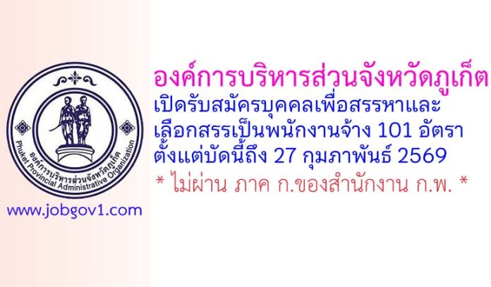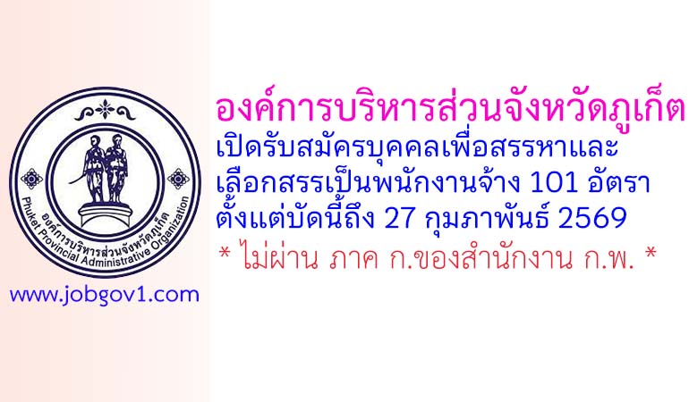 องค์การบริหารส่วนจังหวัดภูเก็ต รับสมัครบุคคลเพื่อสรรหาและเลือกสรรเป็นพนักงานจ้าง 101 อัตรา ตั้งแต่บัดนี้ถึง 27 กุมภาพันธ์ 2569