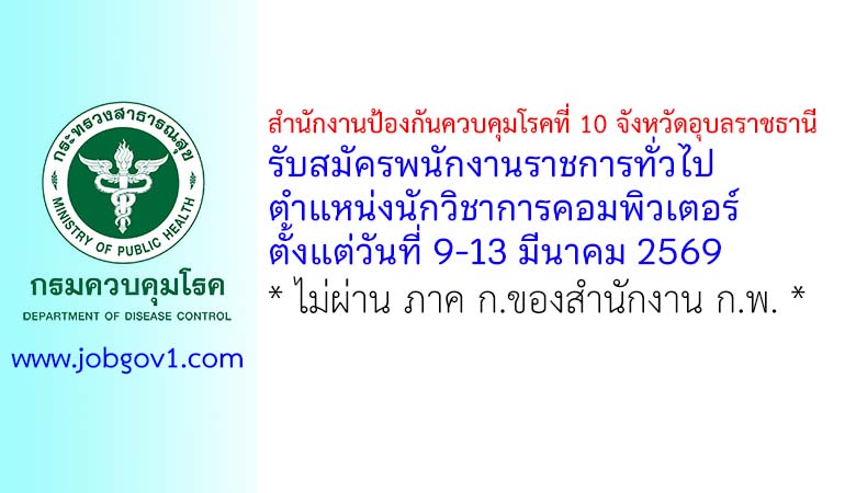 สำนักงานป้องกันควบคุมโรคที่ 10 จังหวัดอุบลราชธานี รับสมัครพนักงานราชการทั่วไป ตำแหน่งนักวิชาการคอมพิวเตอร์ ตั้งแต่วันที่ 9-13 มีนาคม 2569
