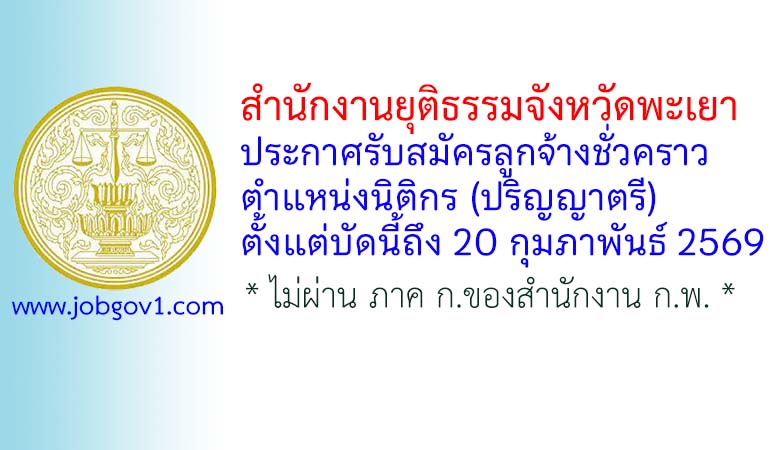 สำนักงานยุติธรรมจังหวัดพะเยา รับสมัครลูกจ้างชั่วคราว ตำแหน่งนิติกร