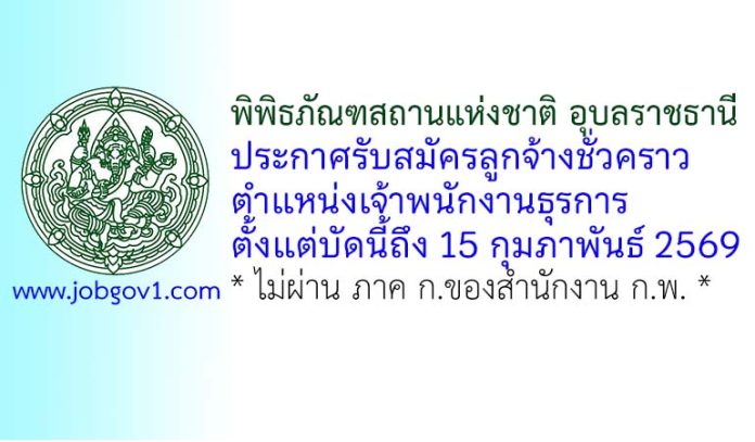 พิพิธภัณฑสถานแห่งชาติ อุบลราชธานี รับสมัครลูกจ้างชั่วคราว ตำแหน่งเจ้าพนักงานธุรการ ตั้งแต่บัดนี้ถึง 15 กุมภาพันธ์ 2569