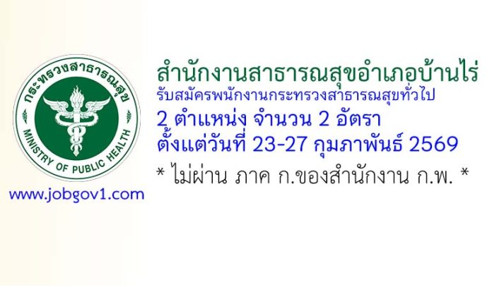 สำนักงานสาธารณสุขอำเภอบ้านไร่ รับสมัครพนักงานกระทรวงสาธารณสุขทั่วไป 2 อัตรา ตั้งแต่วันที่ 23-27 กุมภาพันธ์ 2569