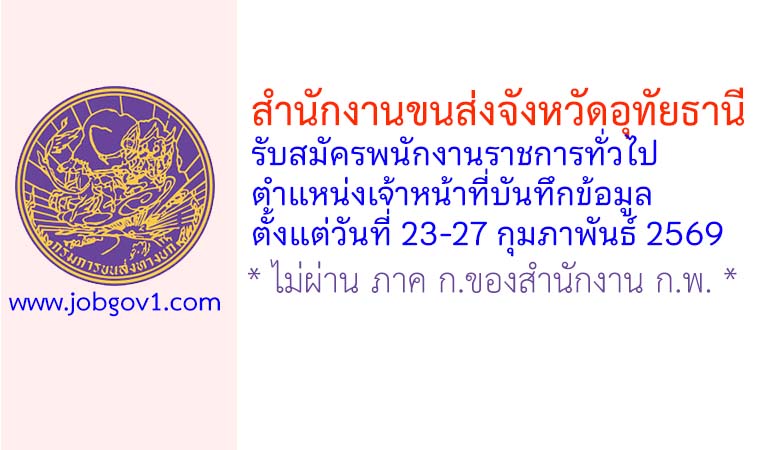 สำนักงานขนส่งจังหวัดอุทัยธานี รับสมัครพนักงานราชการทั่วไป ตำแหน่งเจ้าหน้าที่บันทึกข้อมูล ตั้งแต่วันที่ 23-27 กุมภาพันธ์ 2569