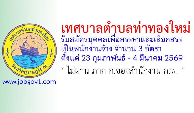 เทศบาลตำบลท่าทองใหม่ รับสมัครบุคคลเพื่อสรรหาและเลือกสรรเป็นพนักงานจ้าง 3 อัตรา ตั้งแต่ 23 กุมภาพันธ์ – 4 มีนาคม 2569