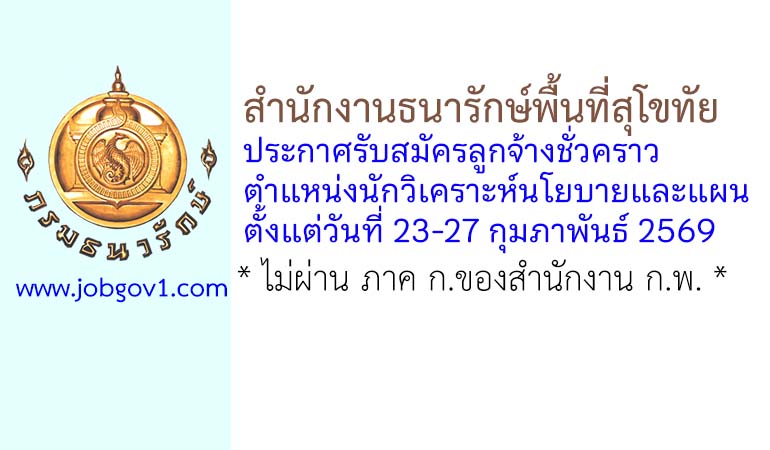 สำนักงานธนารักษ์พื้นที่สุโขทัย รับสมัครลูกจ้างชั่วคราว ตำแหน่งนักวิเคราะห์นโยบายและแผน ตั้งแต่วันที่ 23-27 กุมภาพันธ์ 2569