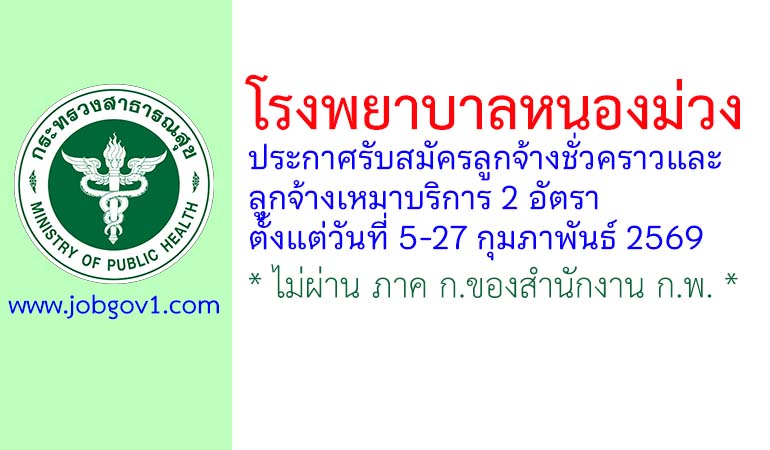 โรงพยาบาลหนองม่วง รับสมัครลูกจ้างชั่วคราว และลูกจ้างเหมาบริการ 2 อัตรา ตั้งแต่วันที่ 5-27 กุมภาพันธ์ 2569