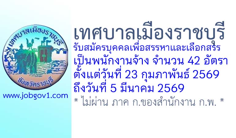 เทศบาลเมืองราชบุรี รับสมัครบุคคลเพื่อสรรหาและเลือกสรรเป็นพนักงานจ้าง 42 อัตรา ตั้งแต่วันที่ 23 กุมภาพันธ์ – 5 มีนาคม 2569