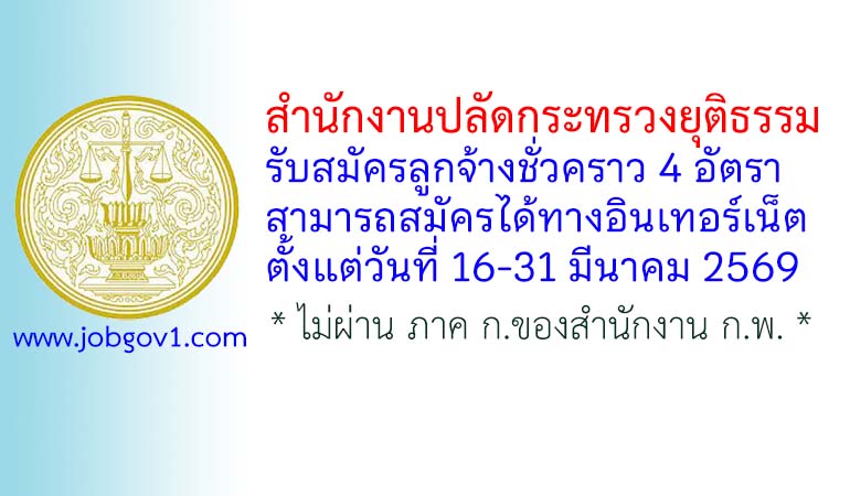สำนักงานปลัดกระทรวงยุติธรรม รับสมัครลูกจ้างชั่วคราว 4 อัตรา ตั้งแต่วันที่ 16-31 มีนาคม 2569