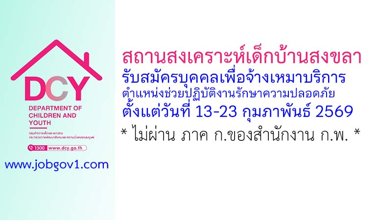 สถานสงเคราะห์เด็กบ้านสงขลา รับสมัครบุคคลเพื่อจ้างเหมาบริการ ตำแหน่งช่วยปฏิบัติงานรักษาความปลอดภัย ตั้งแต่วันที่ 13-23 กุมภาพันธ์ 2569