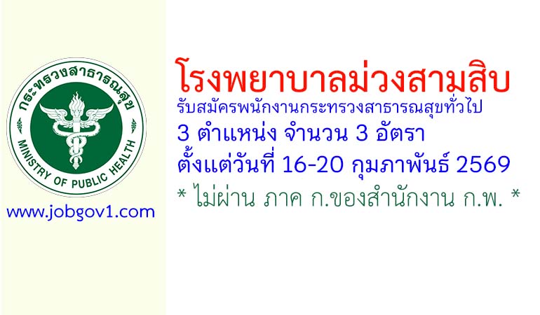 โรงพยาบาลม่วงสามสิบ รับสมัครพนักงานกระทรวงสาธารณสุขทั่วไป 3 อัตรา ตั้งแต่วันที่ 16-20 กุมภาพันธ์ 2569