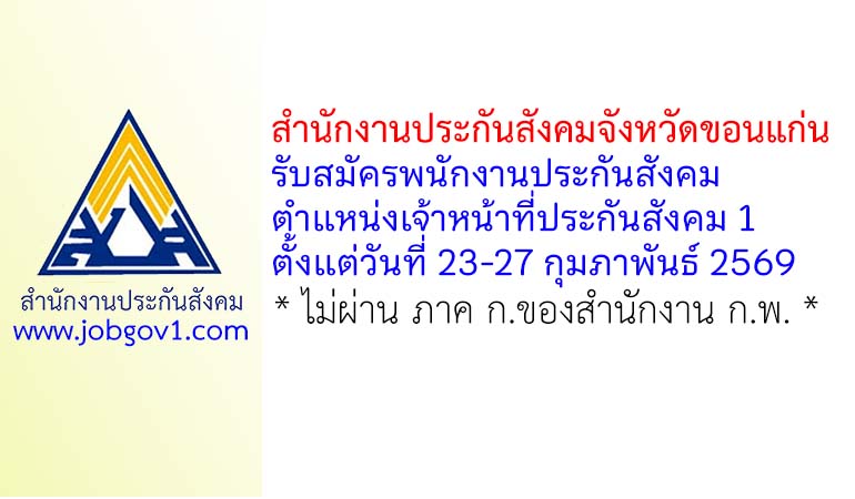 สำนักงานประกันสังคมจังหวัดขอนแก่น รับสมัครพนักงานประกันสังคม ตำแหน่งเจ้าหน้าที่ประกันสังคม 1 ตั้งแต่วันที่ 23-27 กุมภาพันธ์ 2569