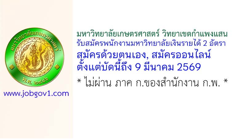ประกาศมหาวิทยาลัยเกษตรศาสตร์ วิทยาเขตกำแพงแสน เรื่อง รับสมัครบุคคลเพื่อจ้างและแต่งตั้งเป็นพนักงานมหาวิทยาลัยเงินรายได้ ครั้งที่ 1 / 2569