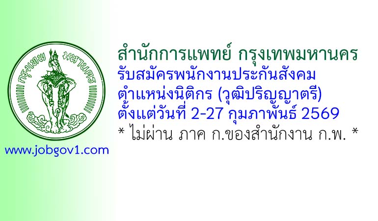สํานักการแพทย์ กรุงเทพมหานคร รับสมัครพนักงานประกันสังคม ตำแหน่งนิติกร ตั้งแต่วันที่ 2-27 กุมภาพันธ์ 2569