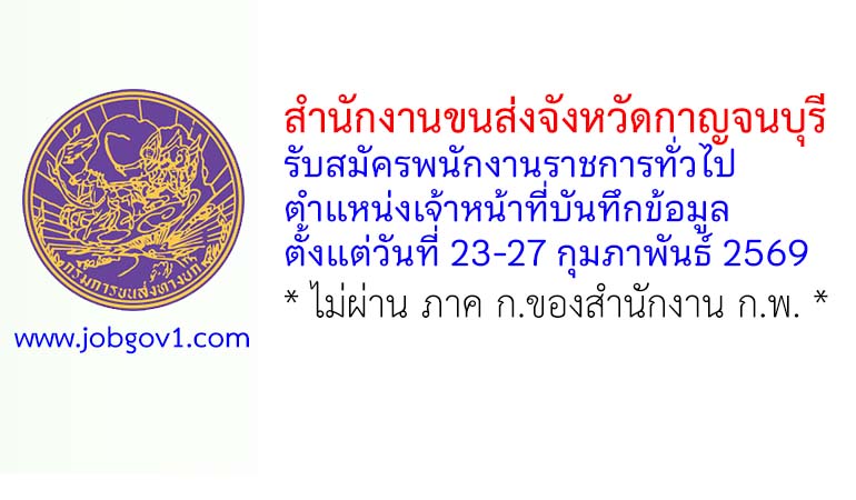 สำนักงานขนส่งจังหวัดกาญจนบุรี รับสมัครพนักงานราชการทั่วไป ตำแหน่งเจ้าหน้าที่บันทึกข้อมูล ตั้งแต่วันที่ 23-27 กุมภาพันธ์ 2569