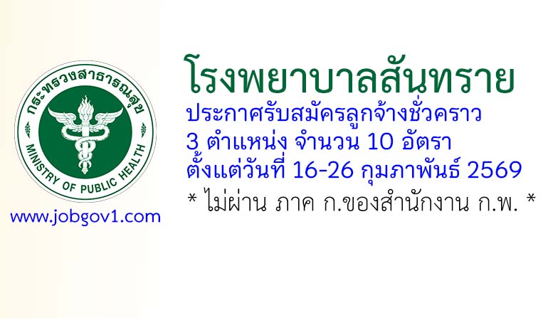 โรงพยาบาลสันทราย รับสมัครลูกจ้างชั่วคราว 3 ตำแหน่ง 10 อัตรา ตั้งแต่วันที่ 16-26 กุมภาพันธ์ 2569