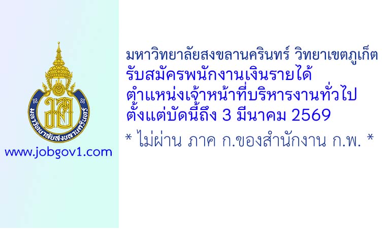 มหาวิทยาลัยสงขลานครินทร์ วิทยาเขตภูเก็ต รับสมัครพนักงานเงินรายได้ ตำแหน่งเจ้าหน้าที่บริหารงานทั่วไป ตั้งแต่บัดนี้ถึง 3 มีนาคม 2569