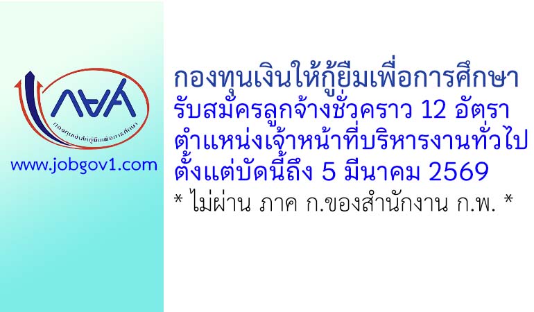 กองทุนเงินให้กู้ยืมเพื่อการศึกษา รับสมัครลูกจ้างชั่วคราว ตำแหน่งเจ้าหน้าที่บริหารงานทั่วไป 12 อัตรา ตั้งแต่บัดนี้ถึง 5 มีนาคม 2569
