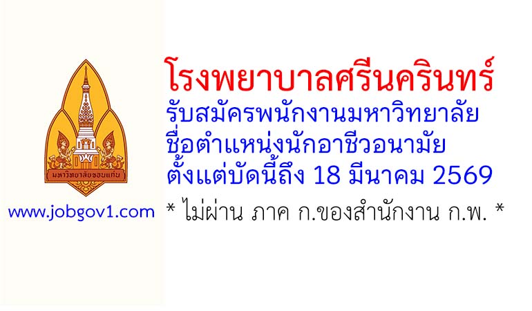 โรงพยาบาลศรีนครินทร์ รับสมัครพนักงานมหาวิทยาลัย ตำแหน่งนักอาชีวอนามัย สังกัดคณะแพทยศาสตร์ ตั้งแต่บัดนี้ถึง 18 มีนาคม 2569