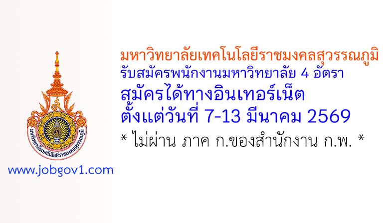 มหาวิทยาลัยเทคโนโลยีราชมงคลสุวรรณภูมิ รับสมัครพนักงานมหาวิทยาลัย 4 อัตรา ตั้งแต่วันที่ 7-13 มีนาคม 2569