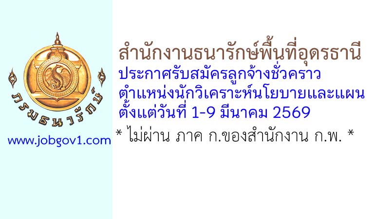 สำนักงานธนารักษ์พื้นที่อุดรธานี รับสมัครลูกจ้างชั่วคราว ตำแหน่งนักวิเคราะห์นโยบายและแผน ตั้งแต่วันที่ 1-9 มีนาคม 2569