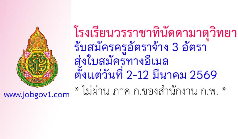 โรงเรียนวรราชาทินัดดามาตุวิทยา รับสมัครครูอัตราจ้าง จำนวน 3 อัตรา ตั้งแต่วันที่ 2-12 มีนาคม 2569