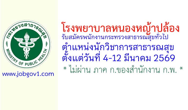 โรงพยาบาลหนองหญ้าปล้อง รับสมัครพนักงานกระทรวงสาธารณสุขทั่วไป ตำแหน่งนักวิชาการสาธารณสุข ตั้งแต่วันที่ 4-12 มีนาคม 2569