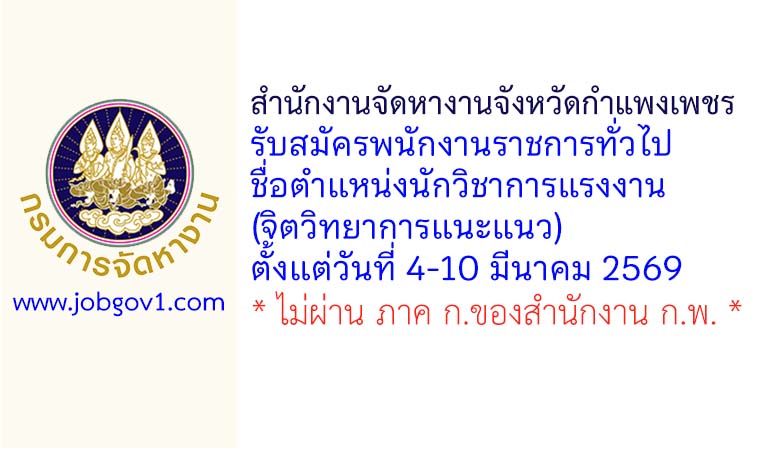 สำนักงานจัดหางานจังหวัดกำแพงเพชร รับสมัครพนักงานราชการทั่วไป ตำแหน่งนักวิชาการแรงงาน (จิตวิทยาการแนะแนว) ตั้งแต่วันที่ 4-10 มีนาคม 2569