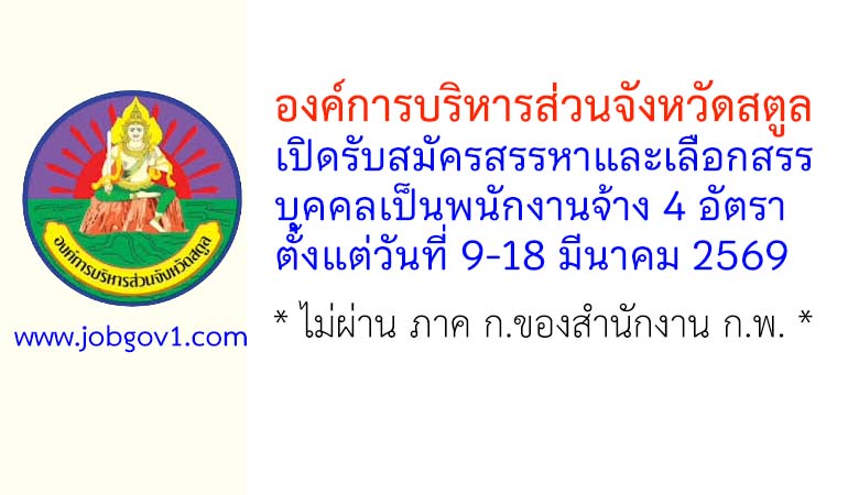 องค์การบริหารส่วนจังหวัดสตูล รับสมัครสรรหาและเลือกสรรบุคคลเป็นพนักงานจ้าง 4 อัตรา ตั้งแต่วันที่ 9-18 มีนาคม 2569