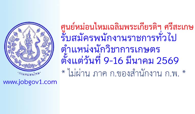 ศูนย์หม่อนไหมเฉลิมพระเกียรติฯ ศรีสะเกษ รับสมัครพนักงานราชการทั่วไป ตำแหน่งนักวิชาการเกษตร ตั้งแต่วันที่ 9-16 มีนาคม 2569
