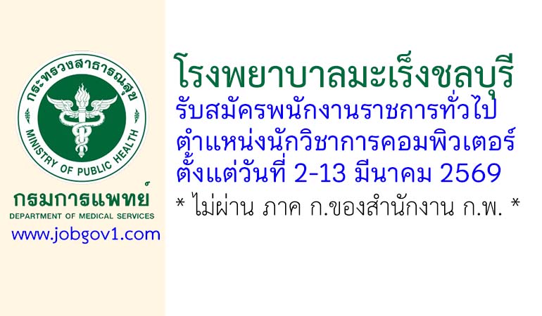 โรงพยาบาลมะเร็งชลบุรี รับสมัครพนักงานราชการทั่วไป ตำแหน่งนักวิชาการคอมพิวเตอร์ ตั้งแต่วันที่ 2-13 มีนาคม 2569