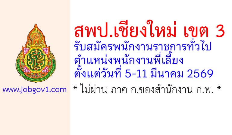สพป.เชียงใหม่ เขต 3 รับสมัครพนักงานราชการทั่วไป ตำแหน่งพนักงานพี่เลี้ยง ตั้งแต่วันที่ 5-11 มีนาคม 2569