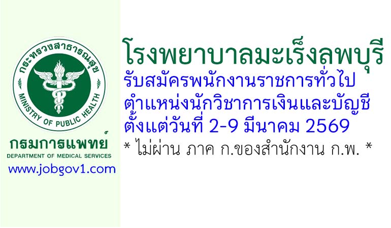 โรงพยาบาลมะเร็งลพบุรี รับสมัครพนักงานราชการทั่วไป ตำแหน่งนักวิชาการเงินและบัญชี ตั้งแต่วันที่ 2-9 มีนาคม 2569