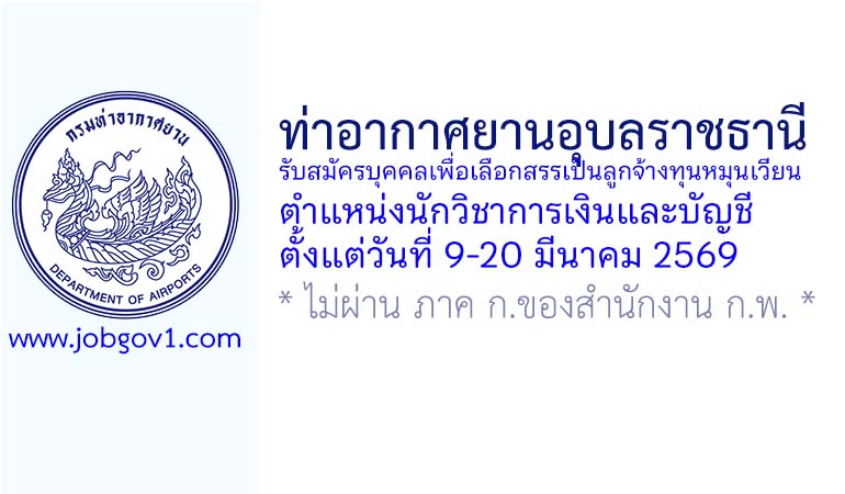 ท่าอากาศยานอุบลราชธานี รับสมัครบุคคลเพื่อเลือกสรรเป็นลูกจ้างทุนหมุนเวียน ตำแหน่งนักวิชาการเงินและบัญชี ตั้งแต่วันที่ 9-20 มีนาคม 2569
