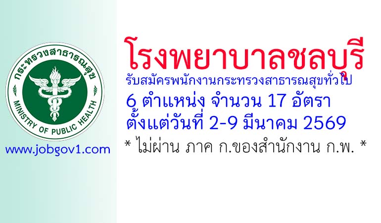 โรงพยาบาลชลบุรี รับสมัครพนักงานกระทรวงสาธารณสุขทั่วไป 17 อัตรา ตั้งแต่วันที่ 2-9 มีนาคม 2569