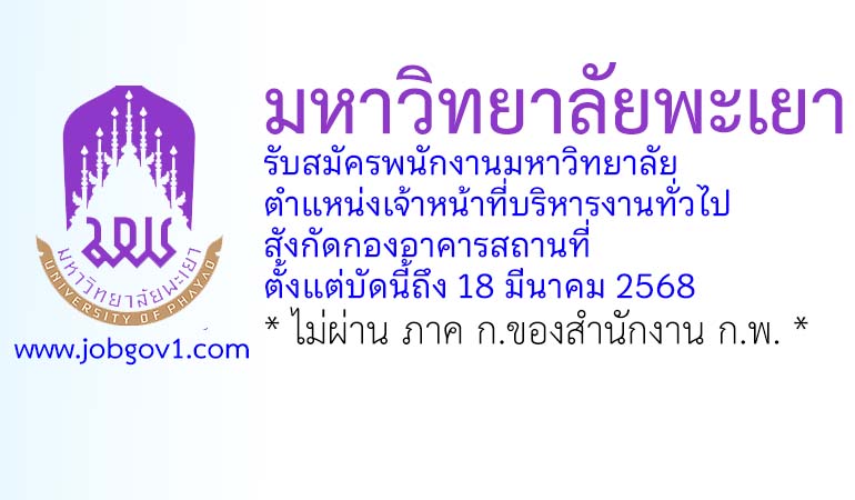 มหาวิทยาลัยพะเยา รับสมัครพนักงานมหาวิทยาลัย ตำแหน่งเจ้าหน้าที่บริหารงานทั่วไป สังกัดกองอาคารสถานที่ ตั้งแต่บัดนี้ถึง 18 มีนาคม 2568
