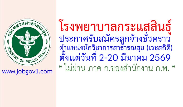 โรงพยาบาลกระแสสินธุ์ รับสมัครลูกจ้างชั่วคราว ตำแหน่งนักวิชาการสาธารณสุข (เวชสถิติ) ตั้งแต่วันที่ 2-20 มีนาคม 2569