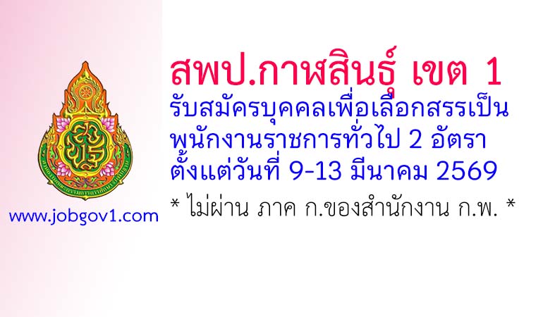 สพป.กาฬสินธุ์ เขต 1 รับสมัครบุคคลเพื่อเลือกสรรเป็นพนักงานราชการทั่วไป 2 อัตรา ตั้งแต่วันที่ 9-13 มีนาคม 2569