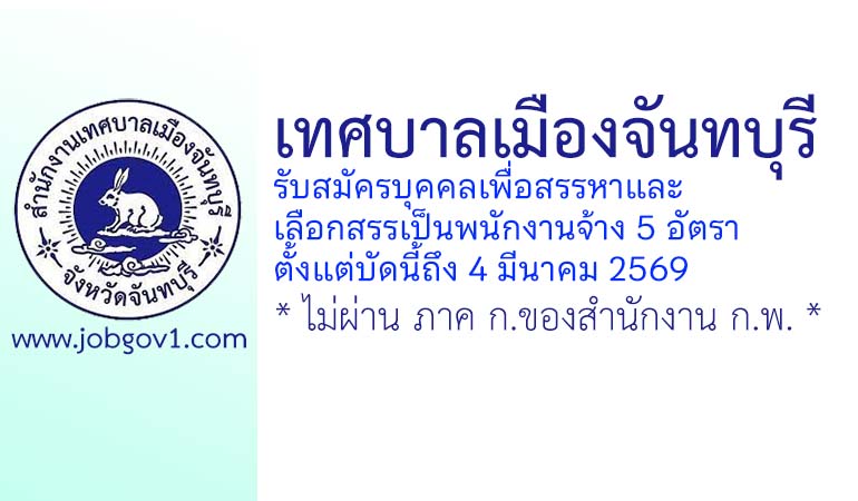 เทศบาลเมืองจันทบุรี รับสมัครบุคคลเพื่อสรรหาและลือกสรรเป็นพนักงานจ้าง 5 อัตรา ตั้งแต่บัดนี้ถึง 4 มีนาคม 2569
