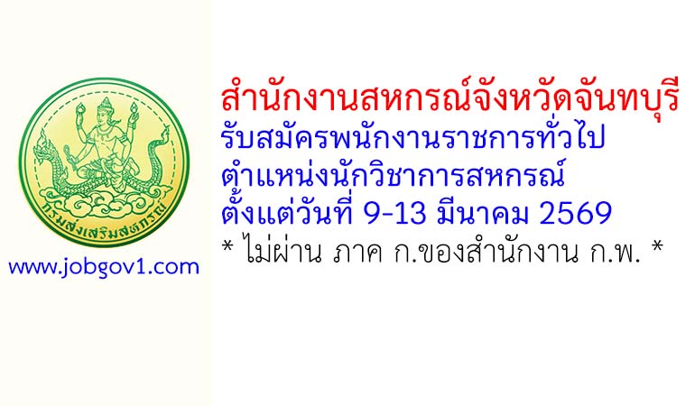 สำนักงานสหกรณ์จังหวัดจันทบุรี รับสมัครพนักงานราชการทั่วไป ตำแหน่งนักวิชาการสหกรณ์ ตั้งแต่วันที่ 9-13 มีนาคม 2569