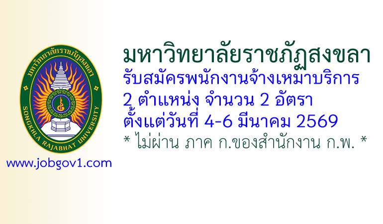 มหาวิทยาลัยราชภัฏสงขลา รับสมัครพนักงานจ้างเหมาบริการ 2 อัตรา ตั้งแต่วันที่ 4-6 มีนาคม 2569