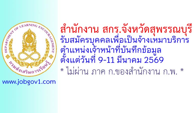 สำนักงาน สกร.จังหวัดสุพรรณบุรี รับสมัครบุคคลเพื่อเป็นจ้างเหมาบริการ ตำแหน่งเจ้าหน้าที่บันทึกข้อมูล ตั้งแต่วันที่ 9-11 มีนาคม 2569