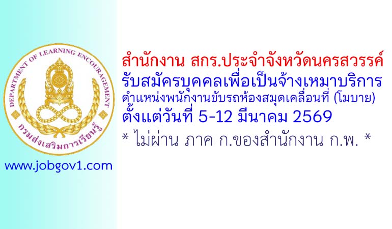 สำนักงาน สกร.ประจำจังหวัดนครสวรรค์ รับสมัครบุคคลเพื่อเป็นจ้างเหมาบริการ ตำแหน่งพนักงานขับรถห้องสมุดเคลื่อนที่ (โมบาย) ตั้งแต่วันที่ 5-12 มีนาคม 2569
