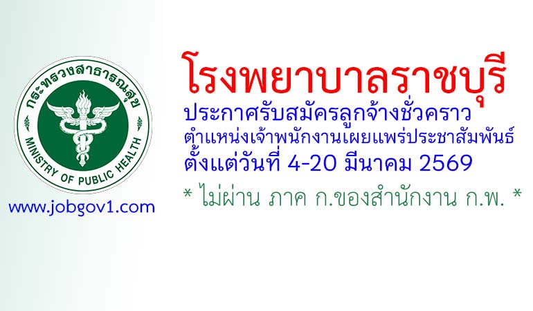โรงพยาบาลราชบุรี รับสมัครลูกจ้างชั่วคราว ตำแหน่งเจ้าพนักงานเผยแพร่ประชาสัมพันธ์ ตั้งแต่วันที่ 4-20 มีนาคม 2569