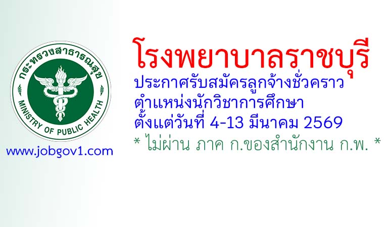 โรงพยาบาลราชบุรี รับสมัครลูกจ้างชั่วคราว ตำแหน่งนักวิชาการศึกษา ตั้งแต่วันที่ 4-13 มีนาคม 2569