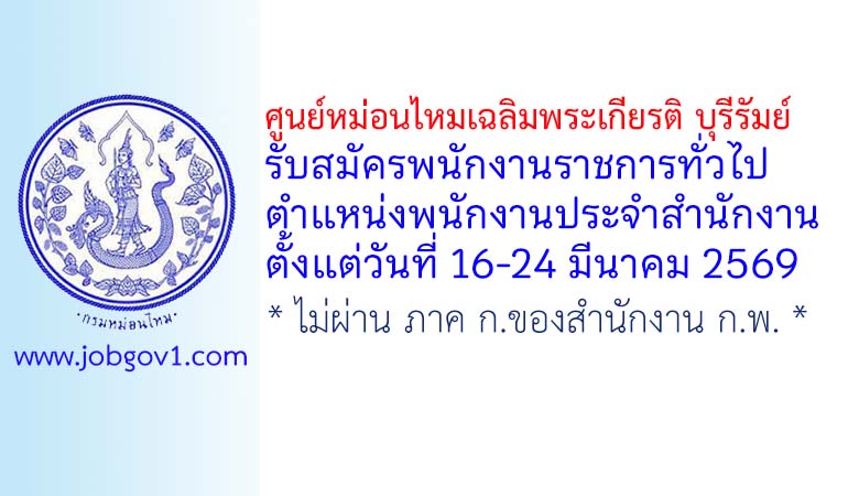 ศูนย์หม่อนไหมเฉลิมพระเกียรติ บุรีรัมย์ รับสมัครพนักงานราชการทั่วไป ตำแหน่งพนักงานประจำสำนักงาน ตั้งแต่วันที่ 16-24 มีนาคม 2569