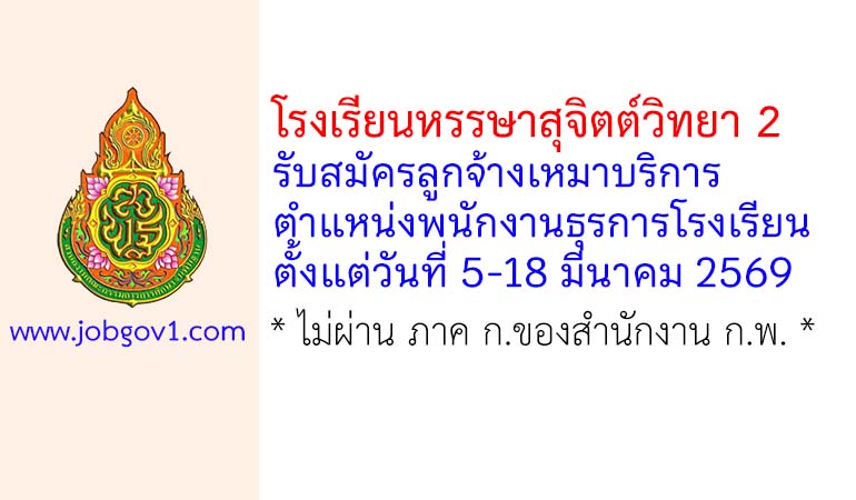โรงเรียนหรรษาสุจิตต์วิทยา 2 รับสมัครลูกจ้างเหมาบริการ ตำแหน่งพนักงานธุรการโรงเรียน ตั้งแต่วันที่ 5-18 มีนาคม 2569