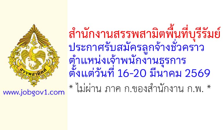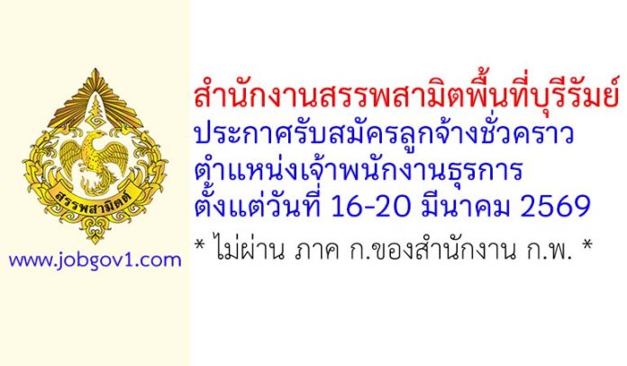 สำนักงานสรรพสามิตพื้นที่บุรีรัมย์ รับสมัครลูกจ้างชั่วคราว ตำแหน่งเจ้าพนักงานธุรการ ตั้งแต่วันที่ 16-20 มีนาคม 2569