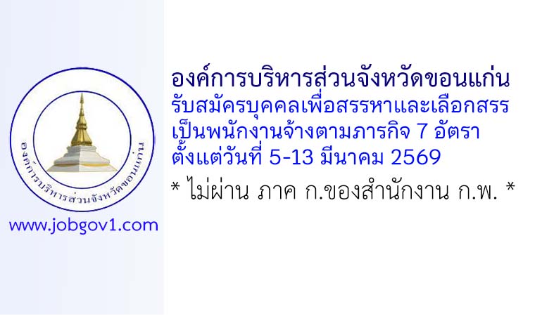 องค์การบริหารส่วนจังหวัดขอนแก่น รับสมัครบุคคลเพื่อสรรหาและเลือกสรรเป็นพนักงานจ้างตามภารกิจ 7 อัตรา ตั้งแต่วันที่ 5-13 มีนาคม 2569