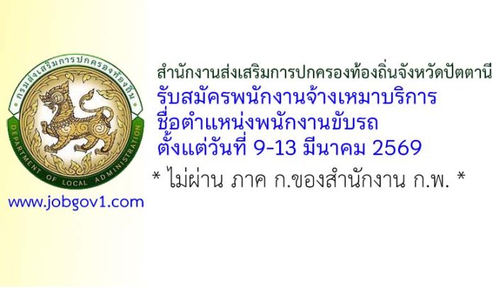 สำนักงานส่งเสริมการปกครองท้องถิ่นจังหวัดปัตตานี รับสมัครพนักงานจ้างเหมาบริการ ตำแหน่งพนักงานขับรถ ตั้งแต่วันที่ 9-13 มีนาคม 2569